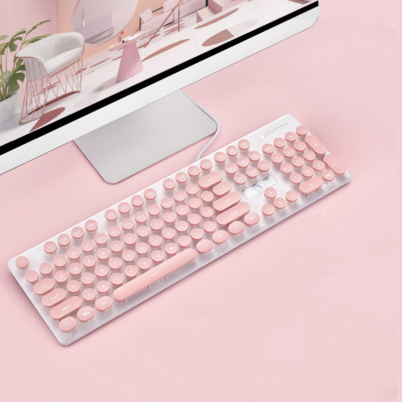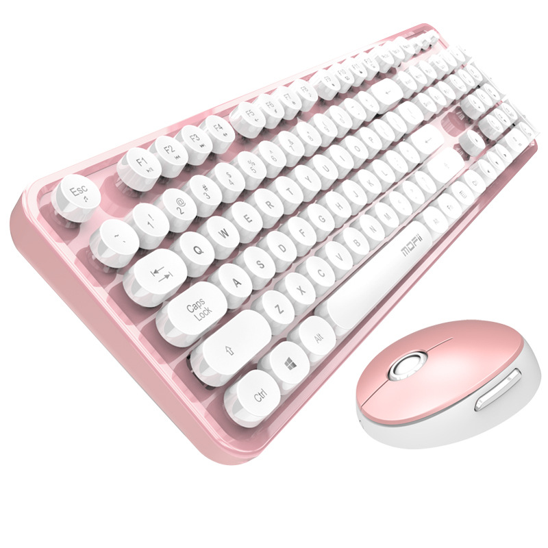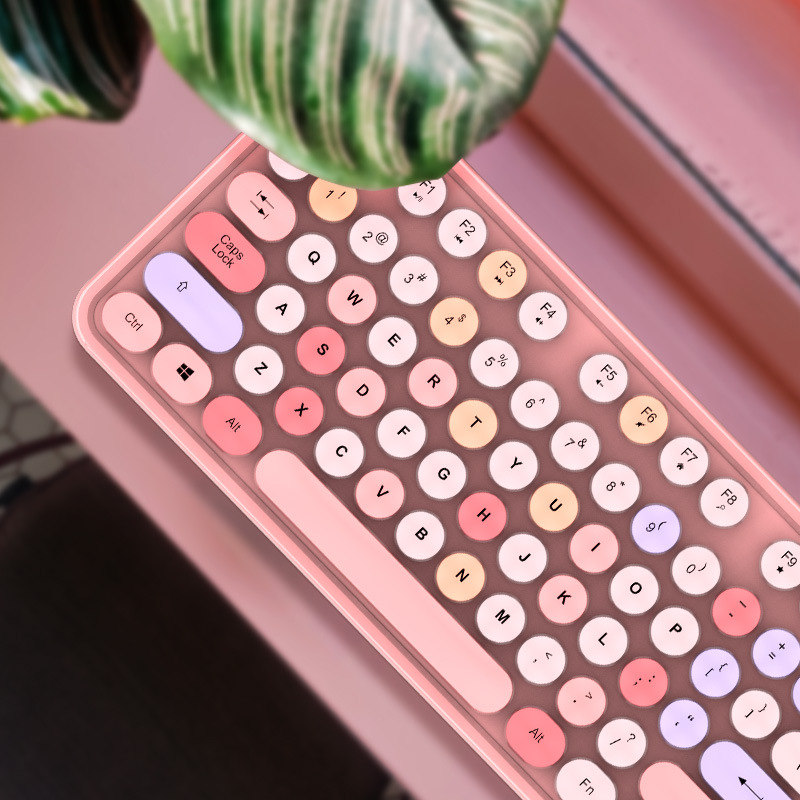 【藍芽無線鍵鼠組】【打字機手感】【104鍵】少女粉混彩懸浮式按鍵機械手感無線藍牙鍵盤滑鼠套組