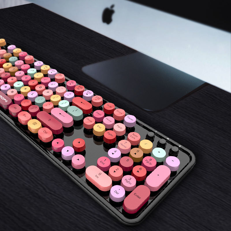 【藍芽無線鍵盤送滑鼠】【口紅色混彩】【復古打字機手感】【104鍵】懸浮式混彩按鍵打字機手感無線藍牙鍵盤滑鼠套組