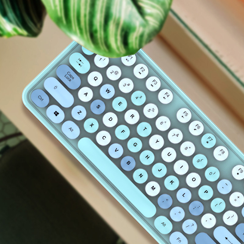 【薄荷綠混彩無線鍵盤滑鼠套組】【復古打字機手感】【104鍵】懸浮式混彩按鍵機械手感無線藍牙鍵盤滑鼠套組