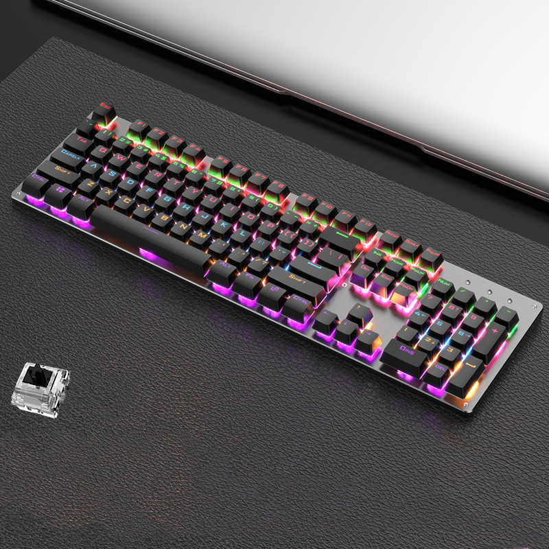 【機械鍵盤】【遊戲辦公兼容青軸】【104鍵】【多媒體旋鈕】【金屬面板】G100槍色混光金屬面板遊戲商務青軸機械鍵盤