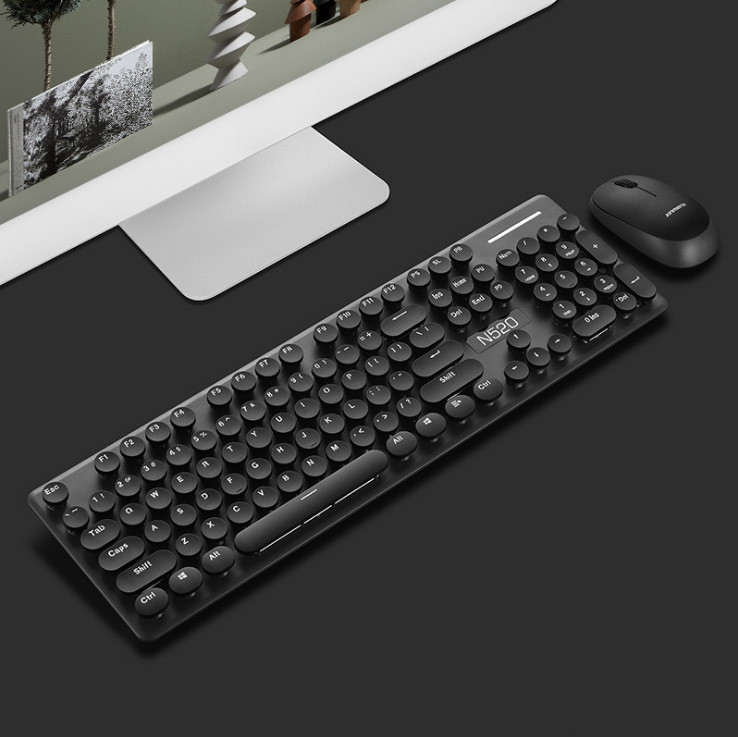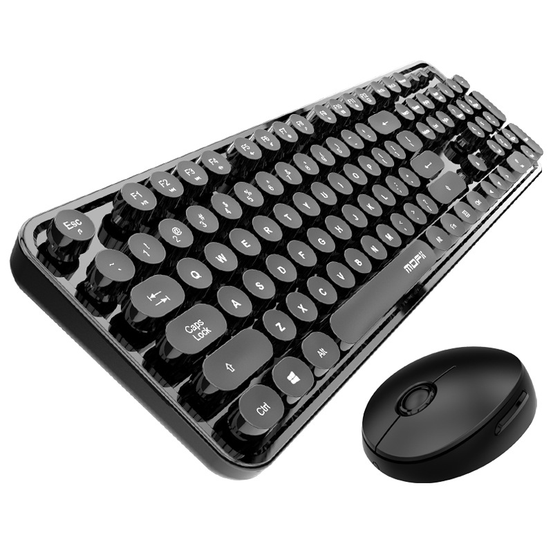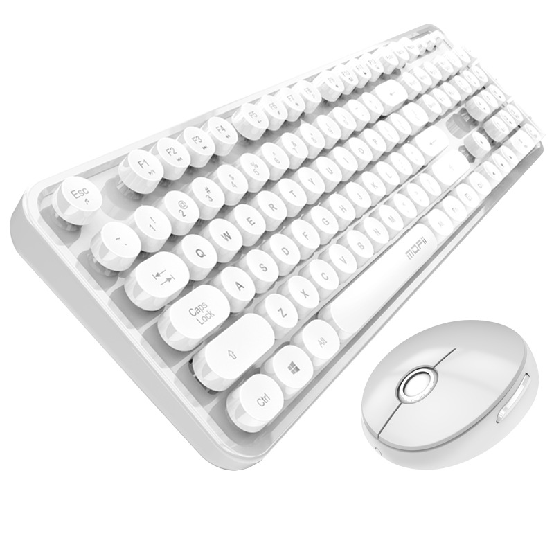 【無線鍵盤滑鼠套組】【復古打字機手感】【三段智慧省電】超棒手感圓形懸浮式鍵帽機械手感無線藍牙鍵盤滑鼠套組