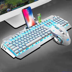 【彩虹光遊戲鍵盤送滑鼠】【合金噴砂面板】【雙色註塑懸浮鍵帽】高CP值好手感白色彩虹光帶手機支架防水工作遊戲鍵盤滑鼠套組