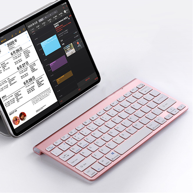 【超靜音無線藍芽鍵盤】【剪刀腳鍵】【金屬拉絲面板】玫瑰金高檔輕薄便攜靜音按鍵多系統兼容78鍵無線藍牙鍵盤