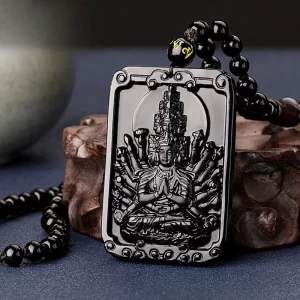 千手觀音 | 生肖守護 | 法相莊嚴 | 十二生肖專屬本命佛項鍊 | 天然冰島寶石級黑曜石 | 大師級精細立體微雕 | 2025生肖守護神本命佛黑曜石項鍊