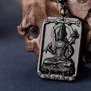 文殊菩薩 | 生肖守護 | 法相莊嚴 | 十二生肖專屬本命佛項鍊 | 天然冰島寶石級黑曜石 | 大師級精細立體微雕 | 2025生肖守護神本命佛黑曜石項鍊