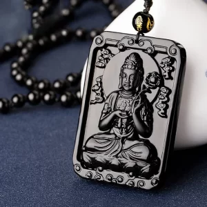 大勢至菩薩 | 生肖守護 | 法相莊嚴 | 十二生肖本命佛項鍊 | 天然烏金黑曜石 | 大師精細立體微雕 | 十二生肖本命佛守護神黑曜石吊墜項鍊