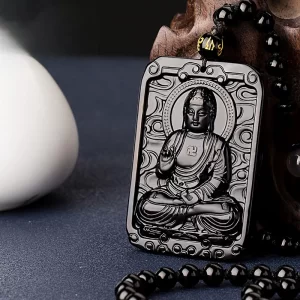 阿彌陀佛 | 生肖守護 | 法相莊嚴 | 十二生肖本命佛項鍊 | 天然烏金黑曜石 | 大師精細立體微雕 | 十二生肖本命佛守護神黑曜石吊墜項鍊