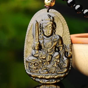 文殊菩薩 | 本命佛牌 | 天然金曜石本命佛項鍊 | 大師級手工精雕 | 招財開運 | 平安納福 | 至強能量天然金曜石十二生肖本命佛項鍊