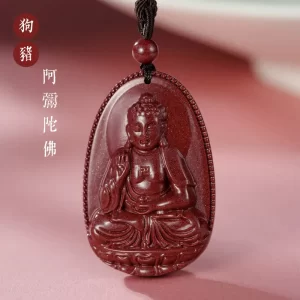 屬狗豬守護神阿彌陀佛 | 天然紫金硃砂本命佛項鍊 | 大師級手工精雕 | 招財化煞 | 平安納福 | 2025至強能量天然硃砂十二生肖本命佛項鍊