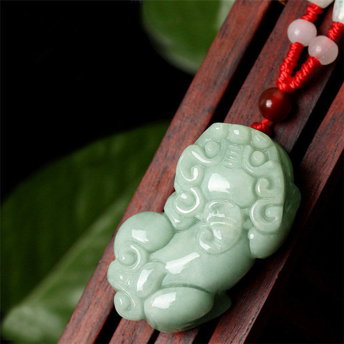 【翡翠精雕貔貅】高檔冰糯種翡翠男女招財守財精雕貔貅項鍊