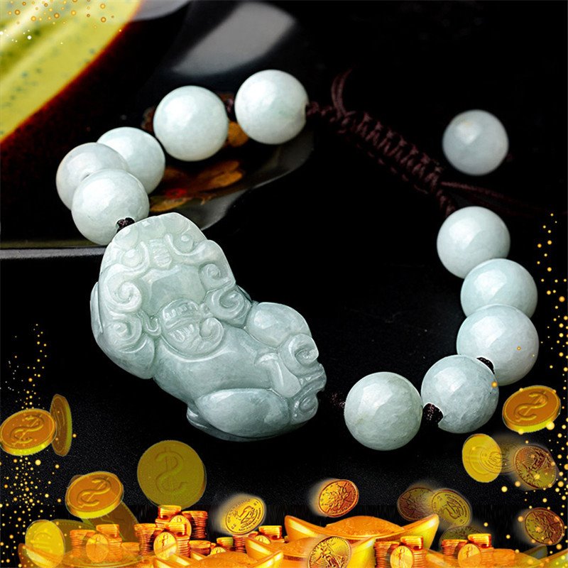 【天然冰糯翡翠】【如意背錢貔貅】高檔天然冰糯翡翠如意背錢貔貅男女招財守財貔貅手鍊