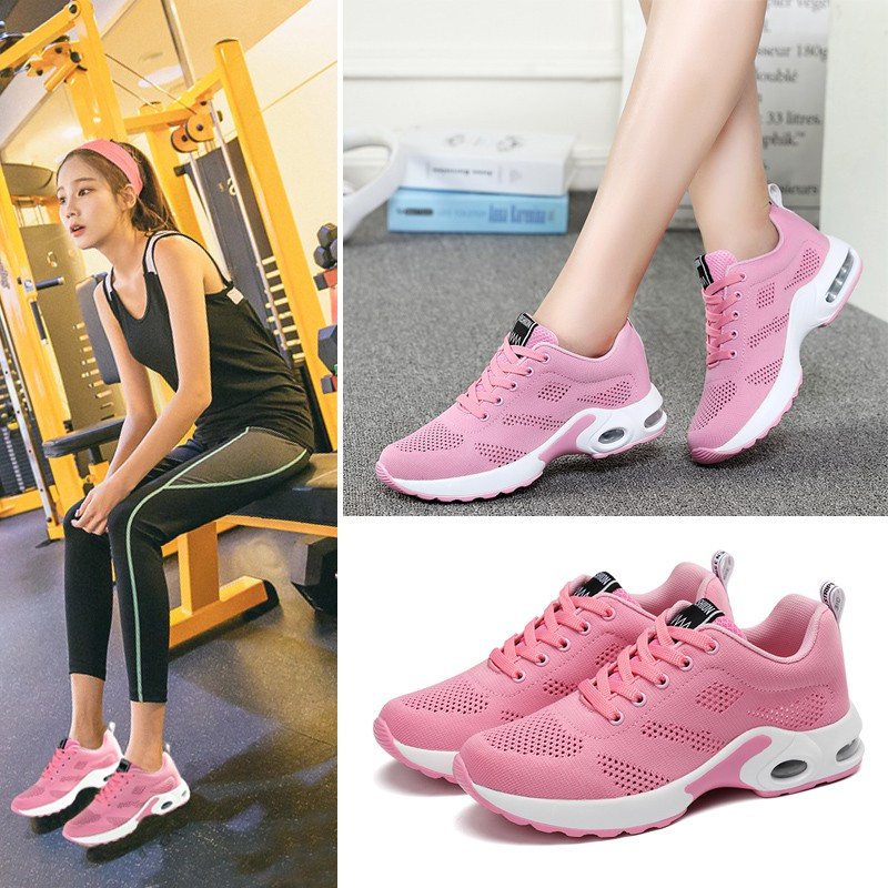 【緩震氣墊運動健身鞋】【透氣飛織鞋面】【4cm跟高】原創設計舒適厚底顯瘦氣墊緩震飛織透氣健身運動女鞋