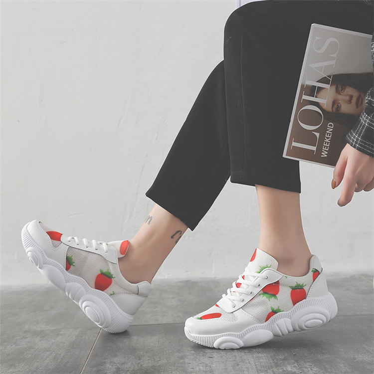 【網紅草莓老爹鞋】【立體小熊鞋底】【跟高4cm】原創設計韓版草莓印花小熊鞋底增高顯瘦運動女鞋老爹鞋