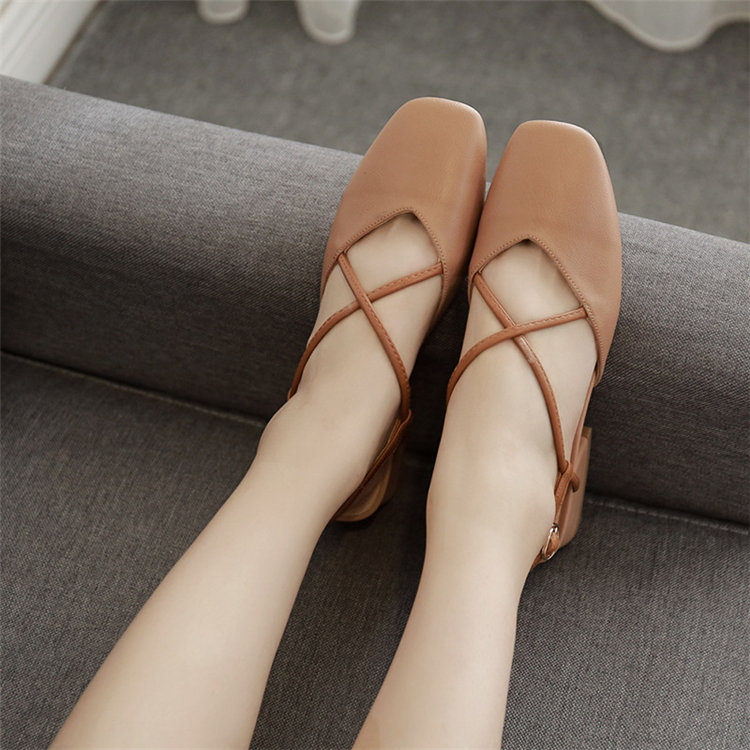 【4cm奶奶鞋】復古一字釦帶4cm粗跟包頭交叉奶奶鞋