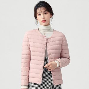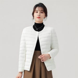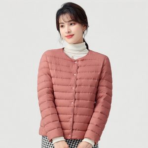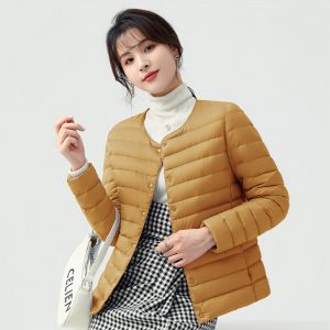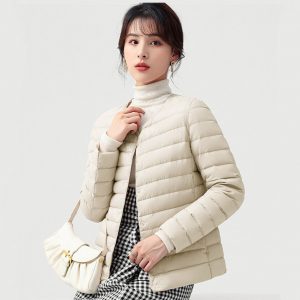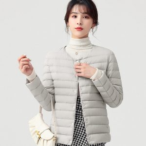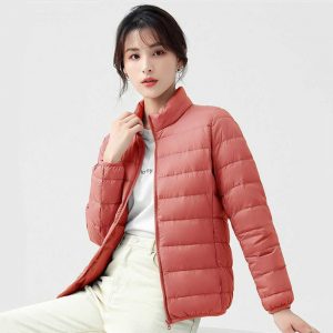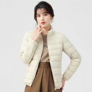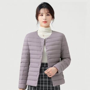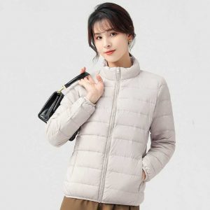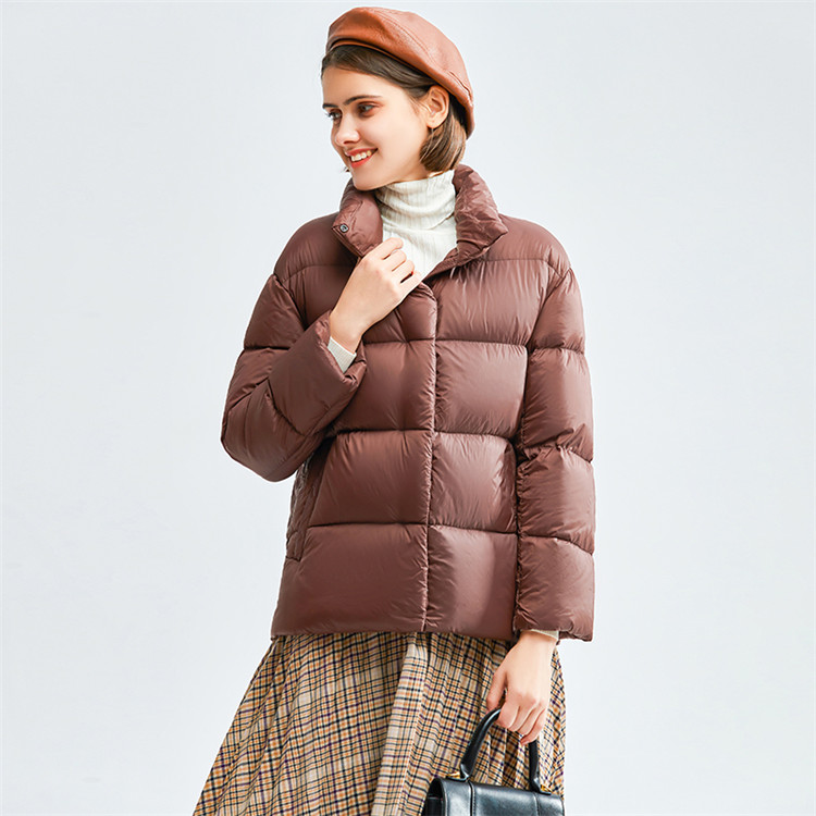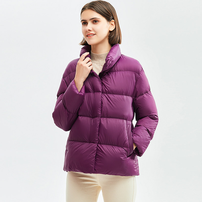 高級柔膚立領極暖羽絨外套 | 鉑金級90%白鴨絨 | 高支高密防水防跑絨 | 莫蘭迪色高級柔膚立領極輕極暖90%充絨時尚百搭女寬鬆大碼羽絨外套