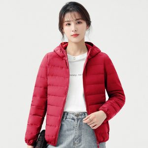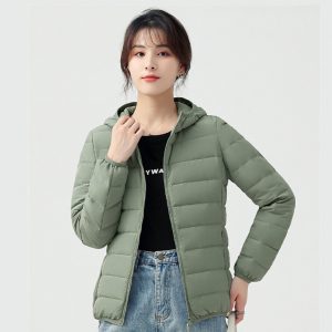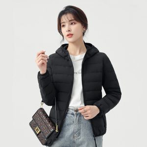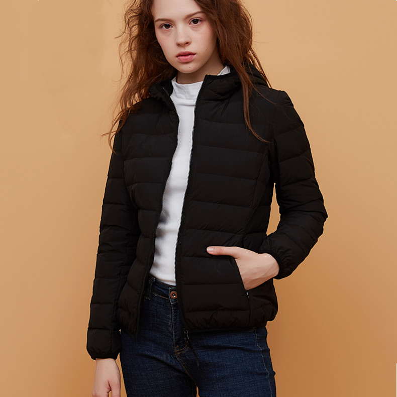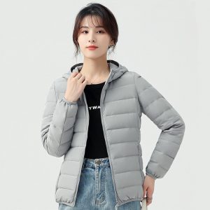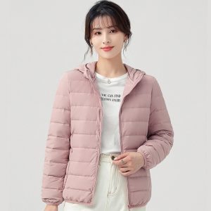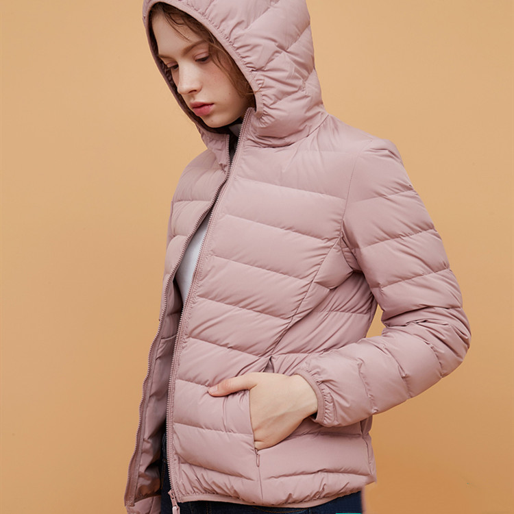 高級無縫輕型連帽羽絨外套 | 鉑金級90羽絨 | 無縫一體科技不跑絨 | 法式高級感時尚純色90羽絨無縫不鉆絨女連帽羽絨外套