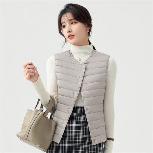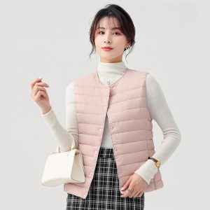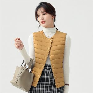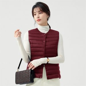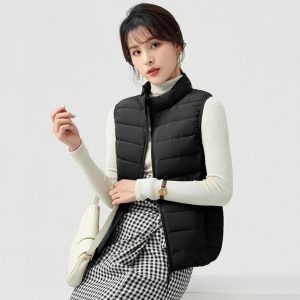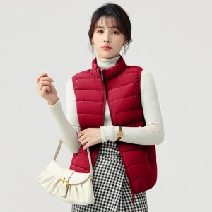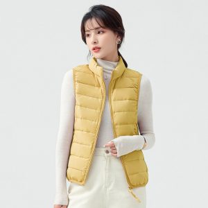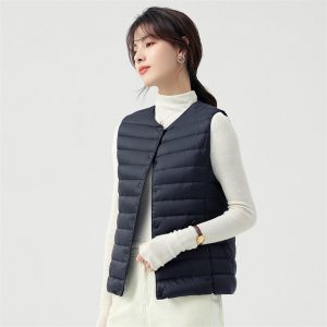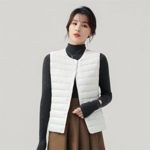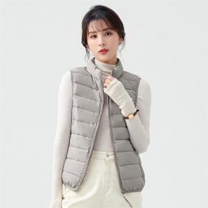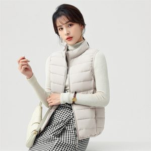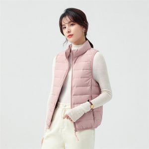 高級無縫壓膠內搭外穿極暖羽絨背心 | 鉑金級90%白鴨絨 | 高支高密防水防跑絨 | 莫蘭迪色高級柔膚極輕極暖90%充絨時尚百搭立領女羽絨背心