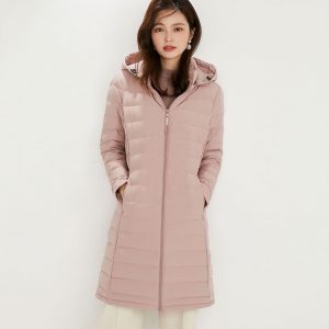 高級無縫一體羽絨外套 | 極輕極暖90%白鴨絨 | 寬鬆立體剪裁超強包容 | 中長版莫蘭迪色高密鎖溫無縫一體成型超暖寬鬆立體女羽絨外套