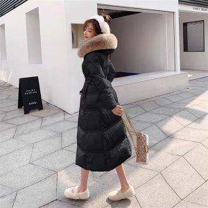 奢級長版極暖羽絨外套大衣 | 高奢連帽狐狸大毛領 | 3D立體廓形剪裁不挑身型 | 90%大朵白鴨絨 | 四層鎖絨科技 | 氣質百搭奢級女士羽絨大衣外套
