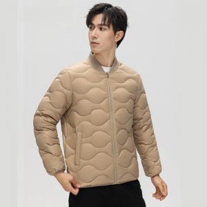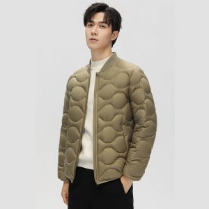 時尚雅痞雲感輕暖軟糯羽絨外套 | 3D立體廓形剪裁 | 90%大絨朵白鴨絨 | 火山岩蓄熱黑科技面料 | 三層鎖絨不跑絨 | 韓版卡其色男棒球羽絨外套