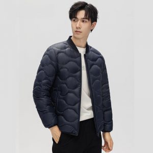 時尚雅痞雲感輕暖軟糯羽絨外套 | 3D立體廓形剪裁 | 90%大絨朵白鴨絨 | 火山岩蓄熱黑科技面料 | 三層鎖絨不跑絨 | 韓版藏青色男棒球羽絨外套