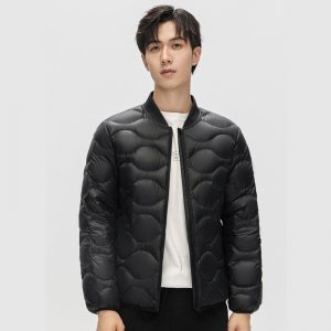 時尚雅痞雲感輕暖軟糯羽絨外套 | 3D立體廓形剪裁 | 90%大絨朵白鴨絨 | 火山岩蓄熱黑科技面料 | 三層鎖絨不跑絨 | 韓版黑色男棒球羽絨外套