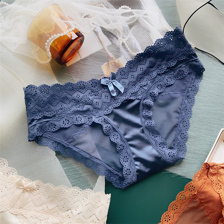 【法式宮廷性感內褲】【蕾絲鏤空蝴蝶結】【柔棉親膚底襠】霧藍古典法式宮廷鏤空蕾絲包臀性感內褲