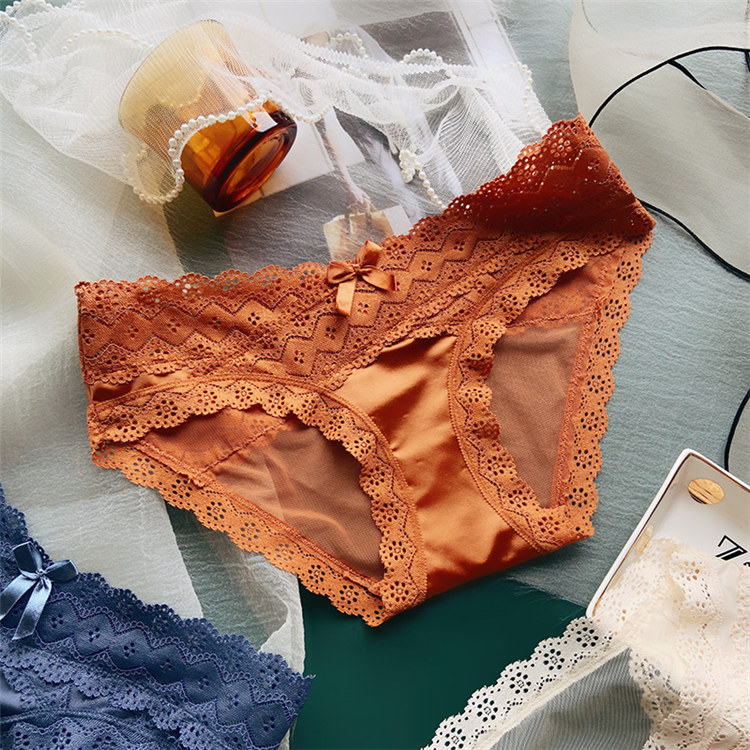 【法式宮廷性感內褲】【蕾絲鏤空蝴蝶結】【柔棉親膚底襠】橘子橙色古典法式宮廷鏤空蕾絲包臀性感內褲