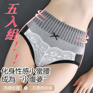 超值五入組 | 中高腰收腹蜜臀 | 石墨烯蜂窩抑菌底檔 | 性感彈力蕾絲 | 健康植物印染 | 無痕無感不捲邊 | 歐式宮廷風蜜臀神器中高腰內褲五入組