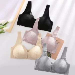 超值四入組 | 穿脫超方便前扣內衣 | 集中托高超聚攏 | 側收副乳調整型 | 蕾絲美背防滑肩帶調整型側收副乳無鋼圈集中上托前扣內衣