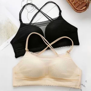超值二入組 | 性感平口網紗蕾絲內衣 | 側排扣交叉美背 | 無痕無鋼圈超舒適 | 性感水溶平口蕾絲防走光交叉美背無鋼圈內衣