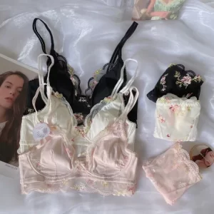 超值三入內衣褲組 | 刺繡流蘇花邊蕾絲內衣 | 交叉美背肩帶 | 舒適自由無鋼圈 | 夢幻性感半杯蕾絲刺繡塑形調整型美背無鋼圈內衣