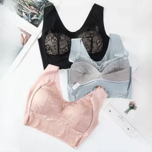 超值三入組 | 法式蕾絲無痕無鋼圈內衣 | 不上滑不跑杯 | 聚攏版型舒適挺拔 | 法式蕾絲花邊舒適無釦美背防下垂大碼無痕無鋼圈內衣