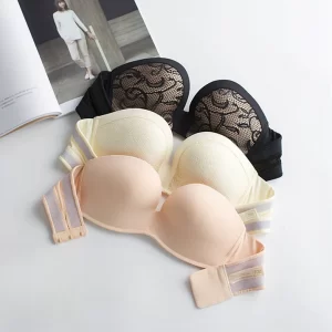超值三入組 | 奇跡二代一字領必入無肩帶內衣 | 深V聚攏上托 | 雙重防下滑設計 | 軟魚骨掌形托杯 | 可調節不緊勒 | 日式蕾絲無肩帶無鋼圈內衣