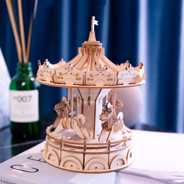 【旋轉木馬】【3D夢幻拼圖】【俄羅斯原採椴木】設計師款創意手作3D夢幻實木拼圖DIY桌面擺設
