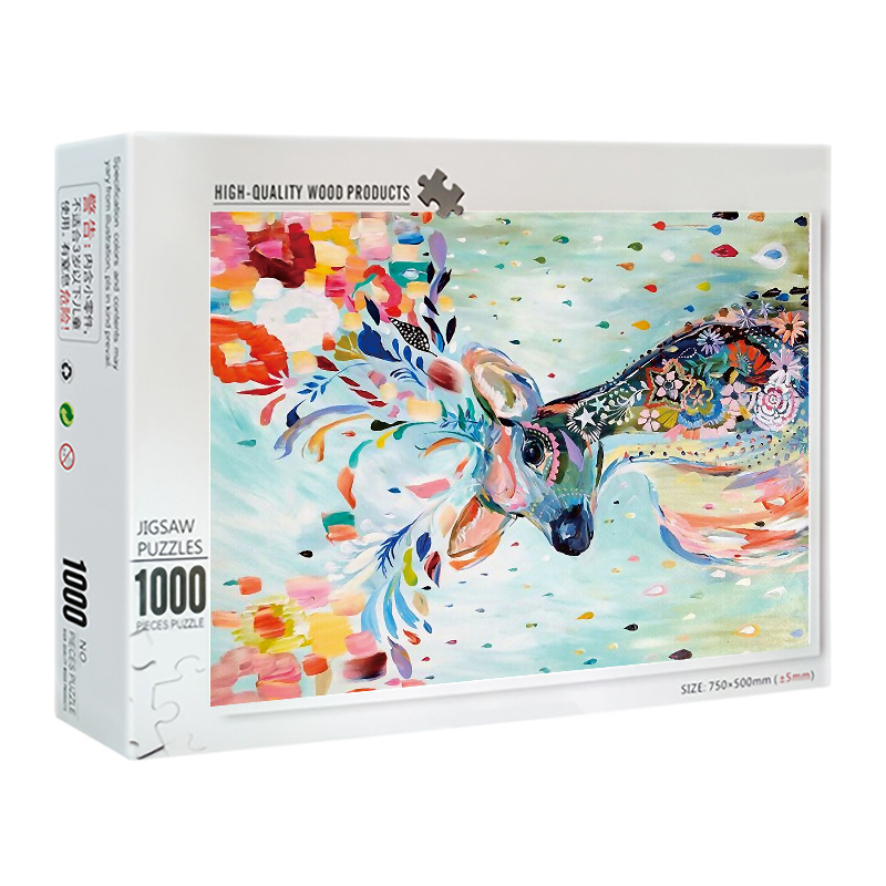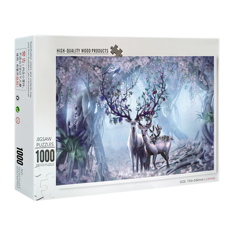 【夢中的花鹿】【高難度1000片】【環保木質】【可捲可提】精品減壓1000片環保木質覆膜無毒無味大呎寸拼圖