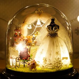 【夢中的婚禮DIY小屋立體拼圖】【透明罩音樂盒】溫馨浪漫DIY拼裝小屋透明罩音樂盒