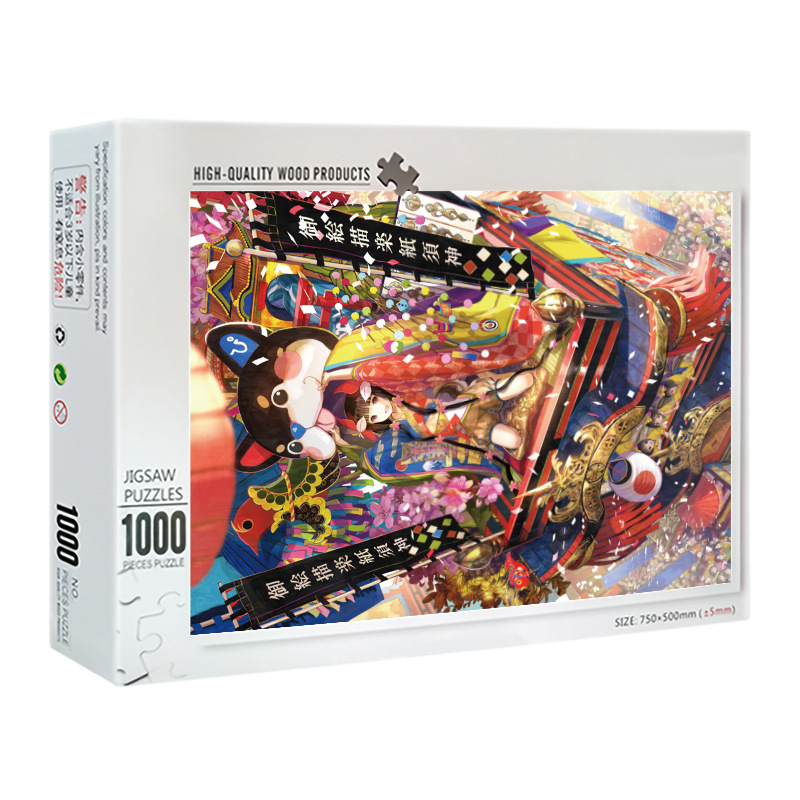 【花與扇】【高難度1000片】【環保木質】【可捲可提】插畫風格精品減壓1000片環保木質覆膜無毒無味大呎寸拼圖