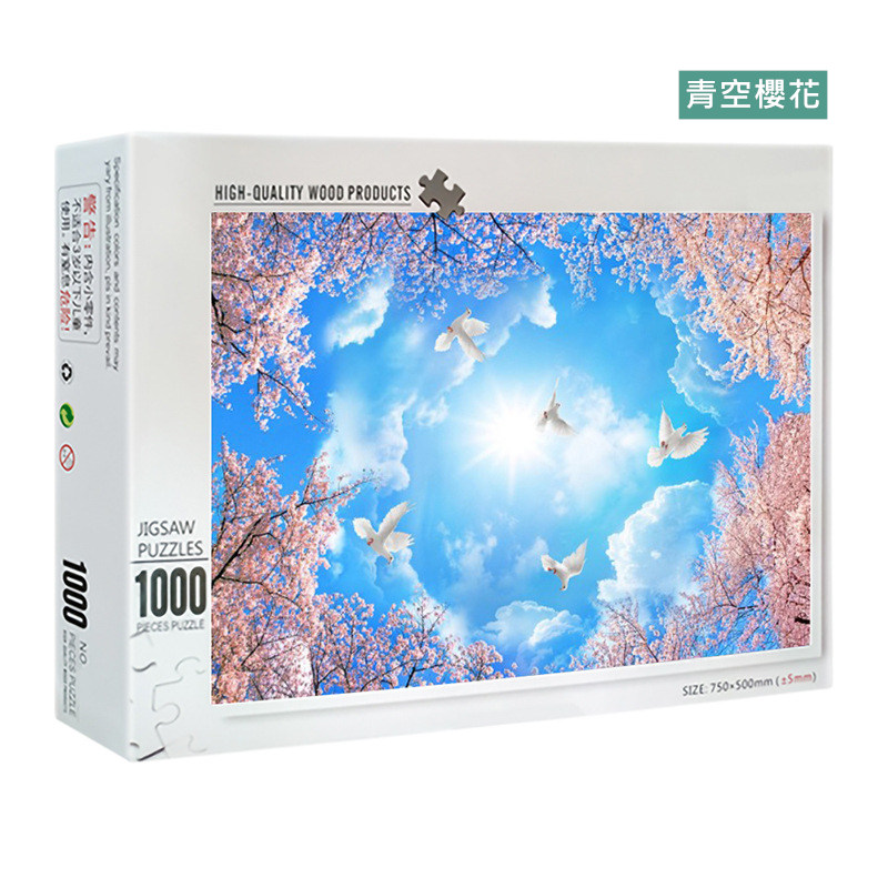 【青空櫻花】【高難度1000片】【環保木質】【可捲可提】精品減壓1000片環保木質覆膜無毒無味大呎寸拼圖