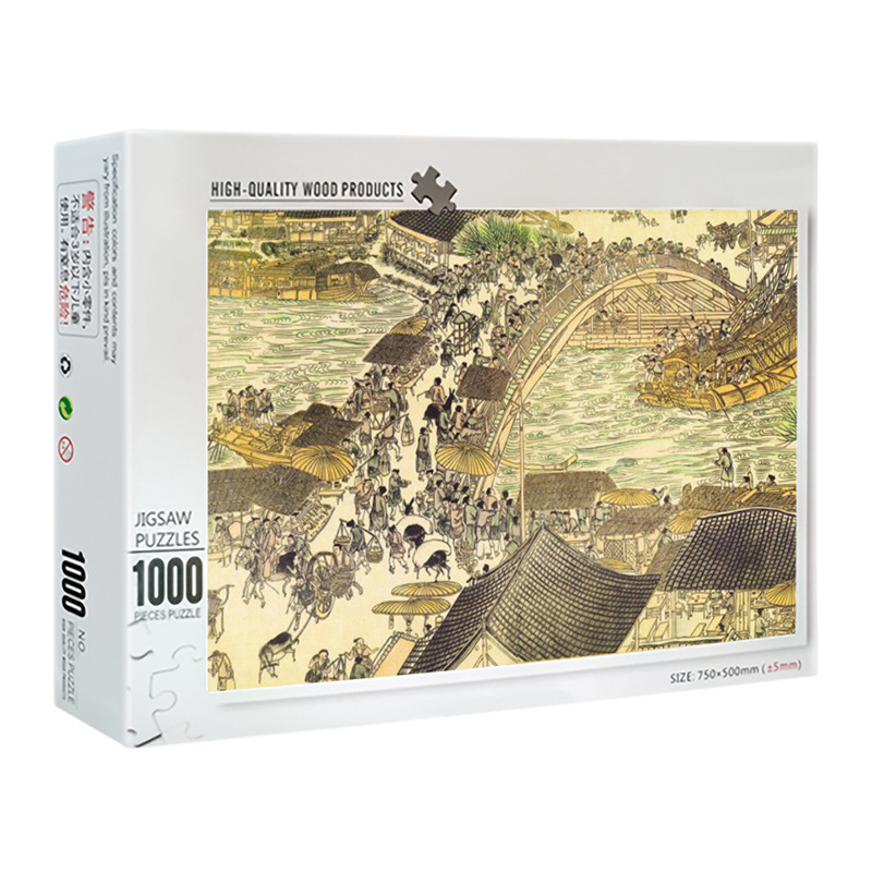 【清明上河圖】【高難度1000片】【環保木質】【可捲可提】精品減壓1000片環保木質覆膜無毒無味大呎寸拼圖