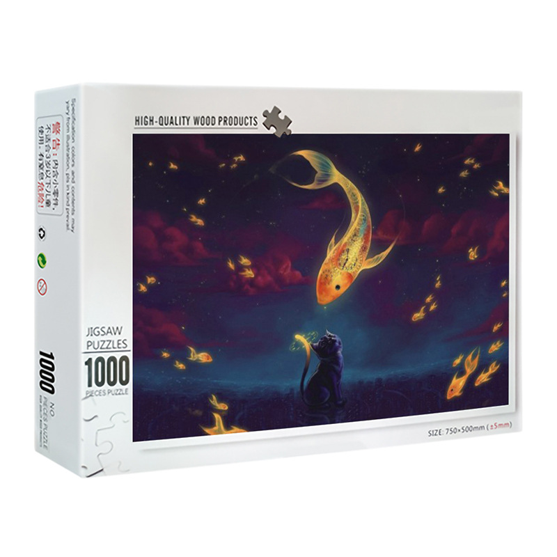 【大魚】【高難度1000片】【環保木質】【可捲可提】插畫風格精品減壓1000片環保木質覆膜無毒無味大呎寸拼圖