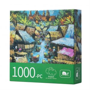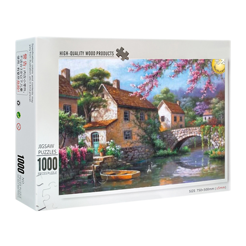 【水鄉清晨】【精品1000片】【高檔椴木】【可捲可提】防水防潮手繪插畫風格精品減壓1000片環保木質覆膜無毒無味拼圖