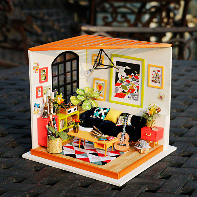 【客廳一角音樂盒積木小屋】【手工DIY智趣屋】日本熱銷時光禮物DIY手作甜蜜音樂積木小屋