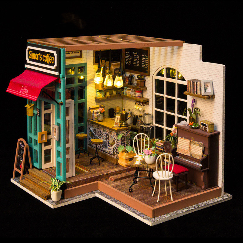 【西蒙的時光咖啡屋】【超多走心細節】【俄羅斯原採椴木】高檔走心設計師款德國無縫激光切割環保椴木夢幻袖珍迷你智趣屋DIY小屋