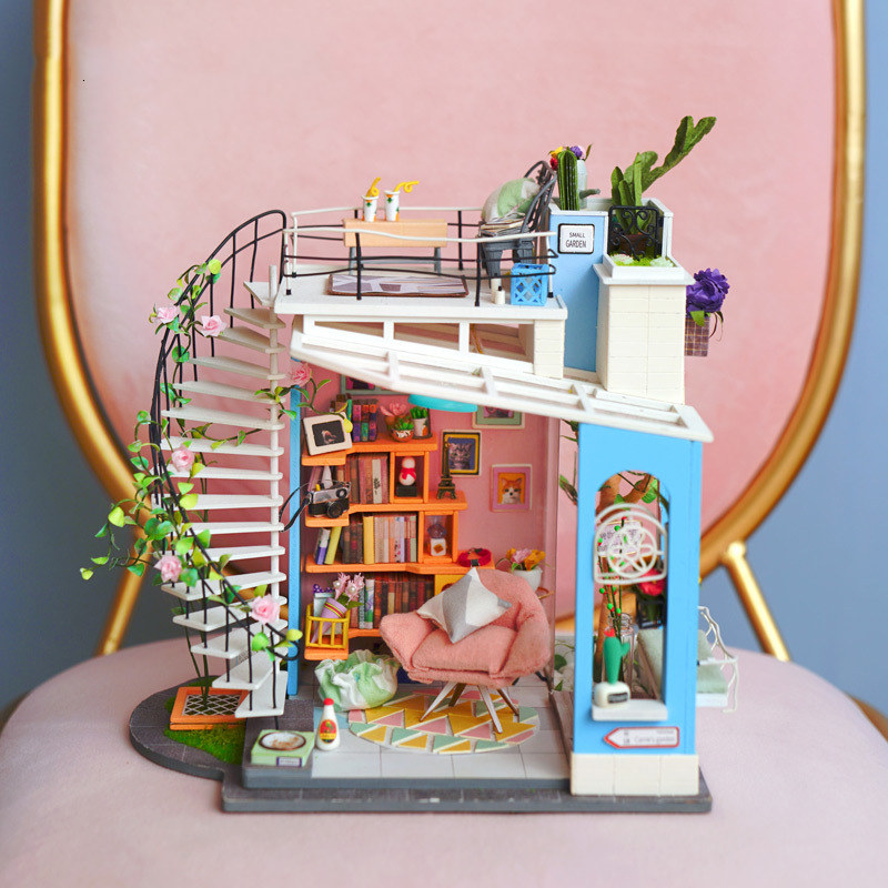 【朵拉的星光天台】【超多走心細節】【俄羅斯原採椴木】高檔走心設計師款德國無縫激光切割環保椴木夢幻袖珍迷你智趣屋DIY小屋