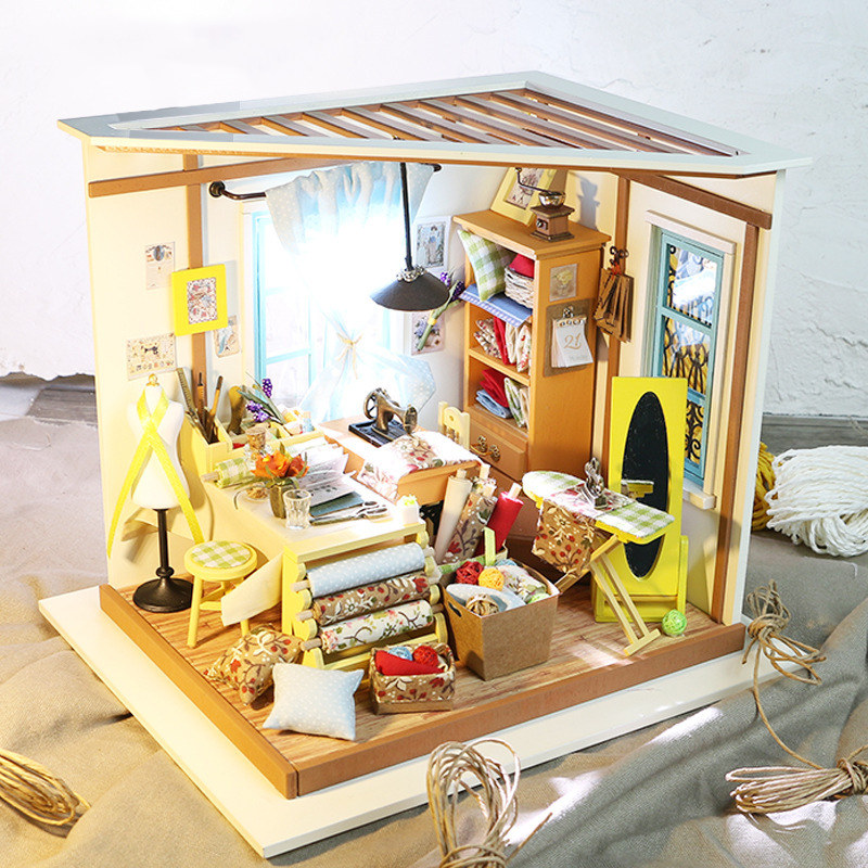 【麗莎的裁縫店】【超多走心細節】【俄羅斯原採椴木】高檔走心設計師款德國無縫激光切割環保椴木夢幻袖珍迷你智趣屋DIY小屋