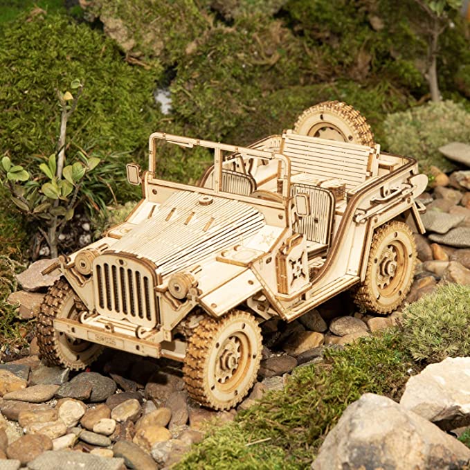 【1:40復古吉普車DIY立體拼圖】【機械齒輪】【FSC認證環保原木】【海德堡高清印刷】高檔全手工高清全彩DIY吉普車立體拼圖