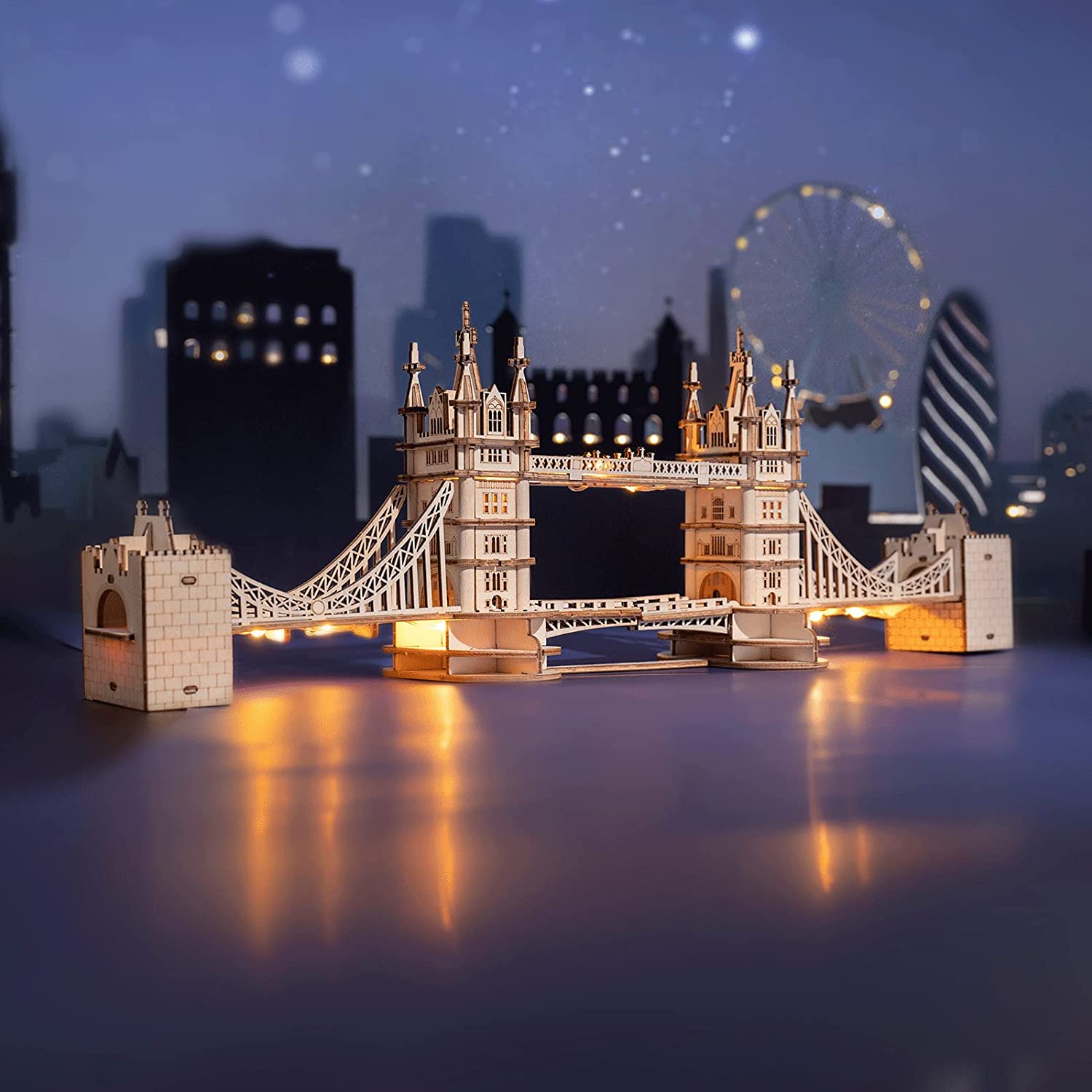 【倫敦塔橋DIY立體拼圖】【夢幻氛圍夜燈】【FSC環保認證無毒原木】【海德堡高清印刷】高檔全手工高清全彩DIY倫敦塔橋立體拼圖小夜燈