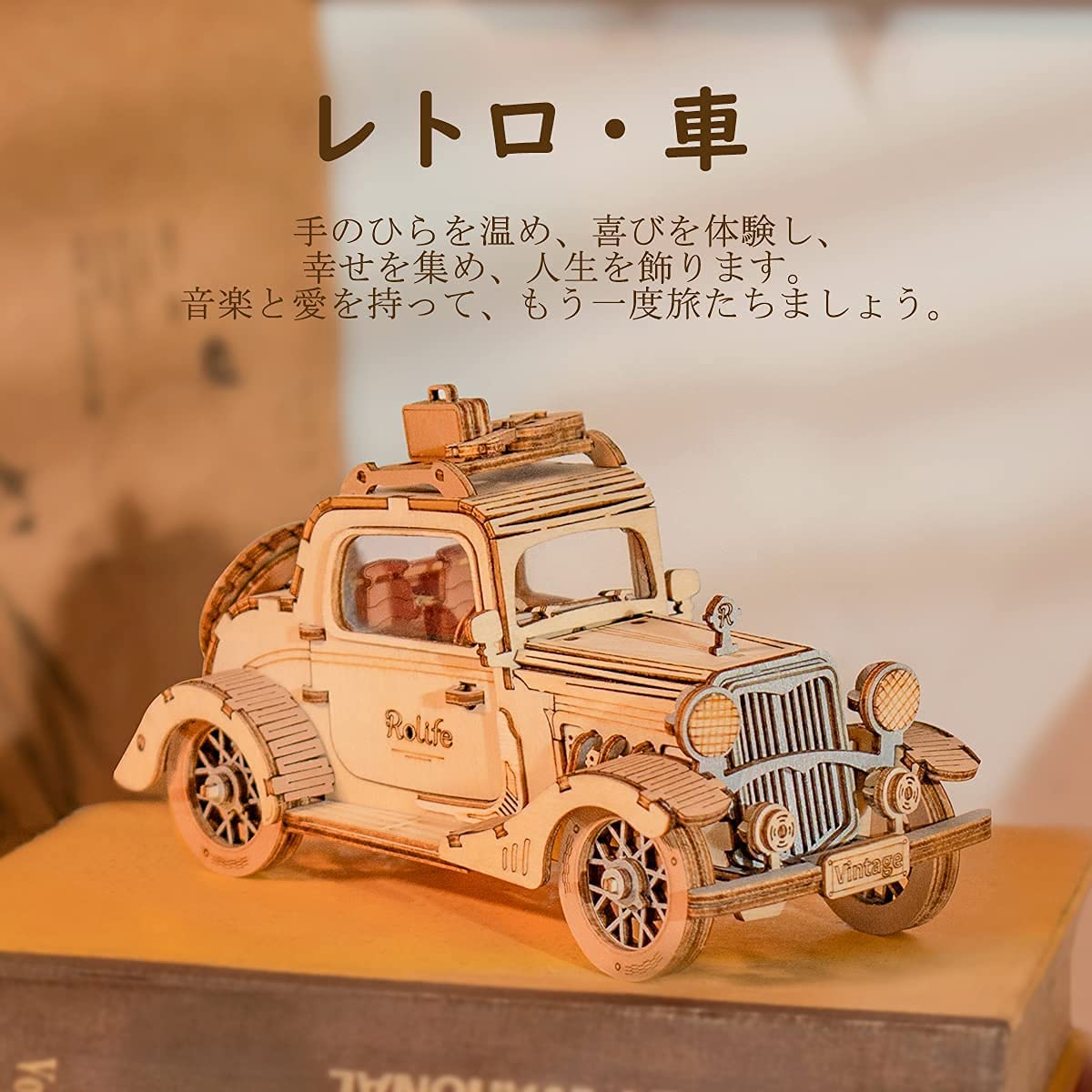 【旅行者的車DIY立體拼圖】【四輪可驅動】【FSC環保認證無毒原木】【海德堡高清印刷】高檔全手工高清全彩DIY復古轎車立體拼圖