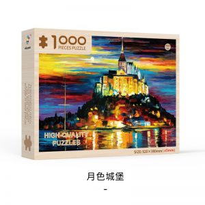 【月色城堡】【精品1000片】【高檔椴木】【可捲可提】防水防潮手繪插畫風格精品減壓1000片環保木質覆膜無毒無味拼圖